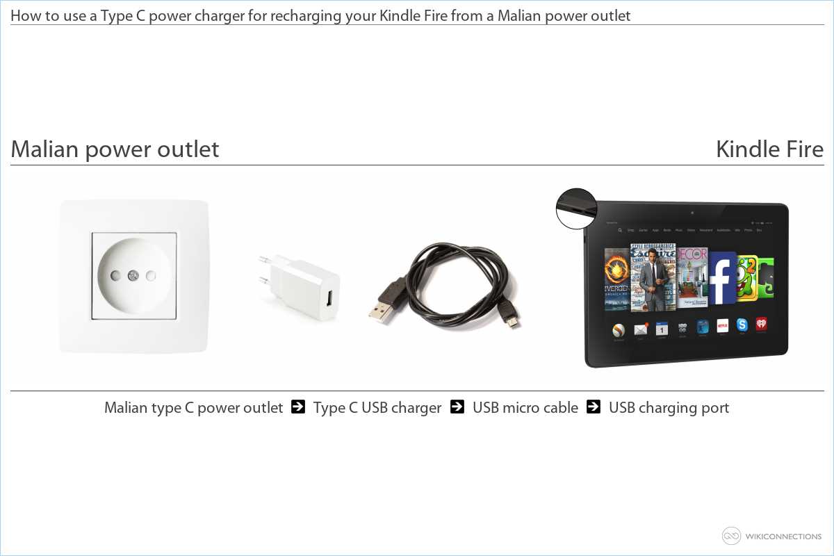 How to use a Type C power charger for recharging your Kindle Fire from a Malian power outlet